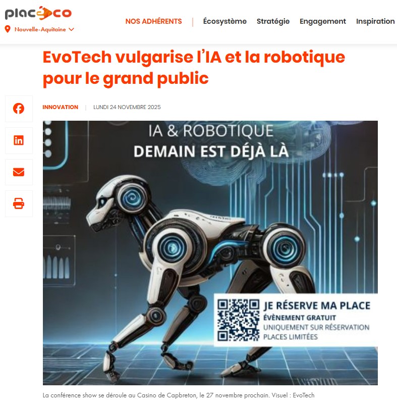 EvoTech vulgarise l’IA et la robotique pour le grand public.